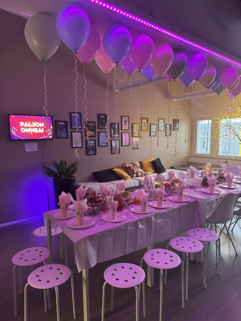 Synttäreille voit varata meiltä ohjausta vain lauantaisin ja sunnuntaisin voit varata tilat vain ilman ohjausta.