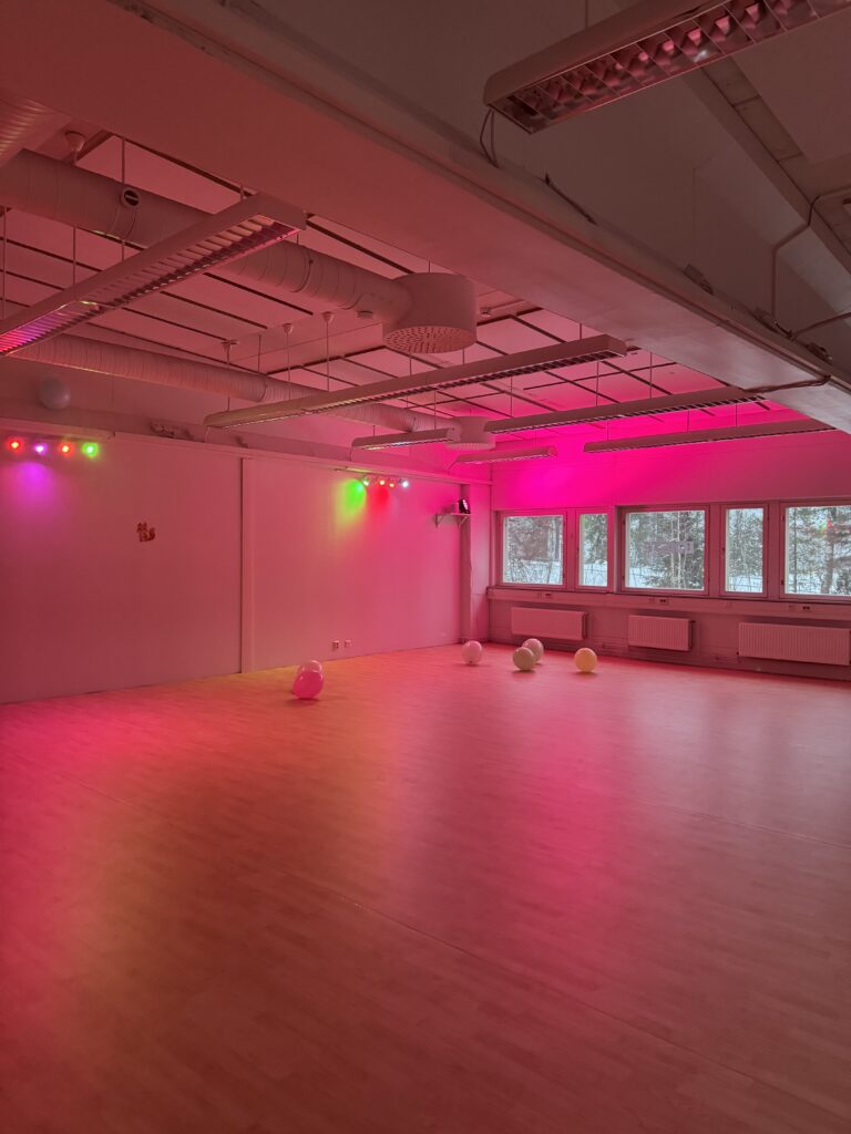 Tanssisalien välineet ovat käytettävissä esimerkiksi temppuradan tai teemajuhlien tekoon! Käytettävissä muun muassa: leikkivarjo, vanteet, airtrack, voimistelupallot, hyppynarut, huivit, isot jumppapallot.